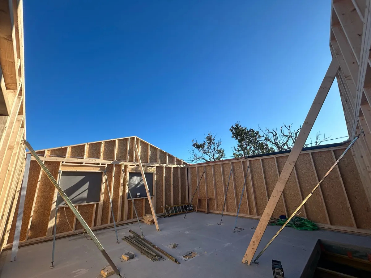 Grâce à la technique du grattage, nous préparons minutieusement la structure existante pour assurer une intégration parfaite de la surélévation. Ce procédé permet d’optimiser l’adhérence entre l’ancienne construction et la nouvelle ossature bois, garantissant ainsi solidité et durabilité.